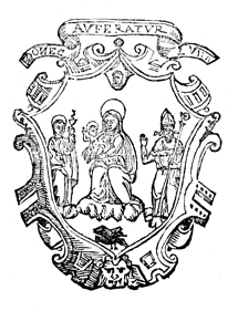 Description: This seal depicts Mary holding Jesus as an infant in her arms while two priests flank them on the right and left. Above the figures is a banner with the Latin inscription, "DONEC AUFERATUR UNA," that reads, "Until This One".