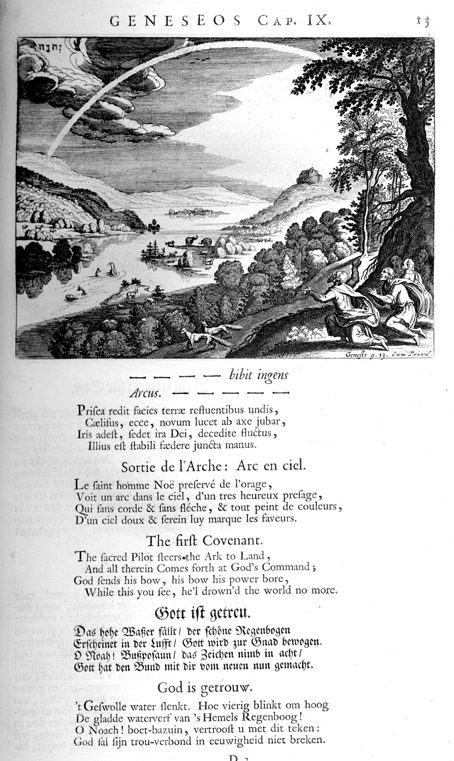 Description: God's promise appears as a rainbow to Noah and his sons .