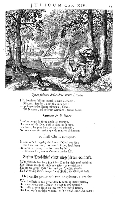 Description: Samson slays a lion in the forest.