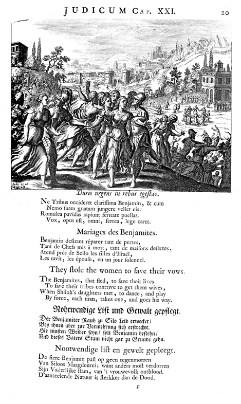 Description: The remaining men of the tribe of Benjamin kidnap the daughters of Shiloh, as they are dancing in the vineyards.