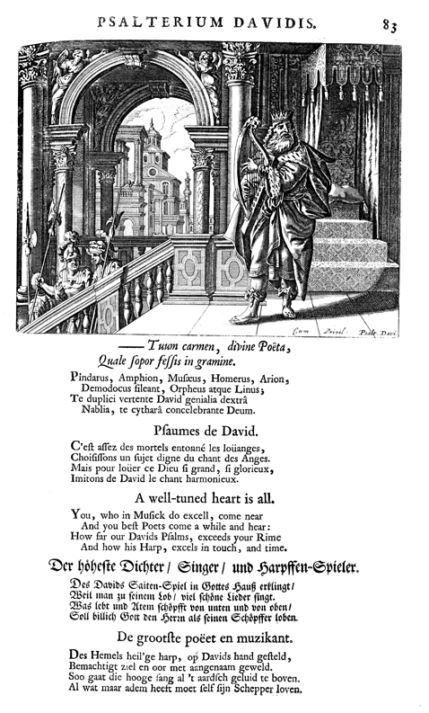 Description: King David stands with his harp, singing a song of praise to God.