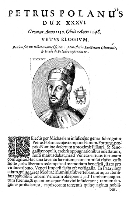 Description: A portrait of Venetian Doge Pietro Polani (r. 1130-1148). He declined to preach the Second Crusade in Venice, instead concentrating on politics and wars closer to home.