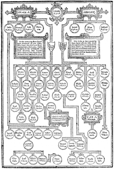 Description: Family trees of Issachar and Zebulon, ninth and tenth tribes of Israel.