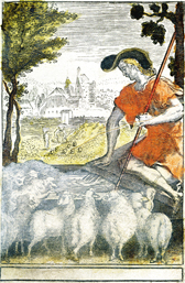 Description: Jacob tends his share of the flock that his father-in-law, Laban, allowed him, which Jacob manages to increase through treachery. This engraving illustrates the violation of the ninth commandment: “You shall not covet your neighbor's house”.