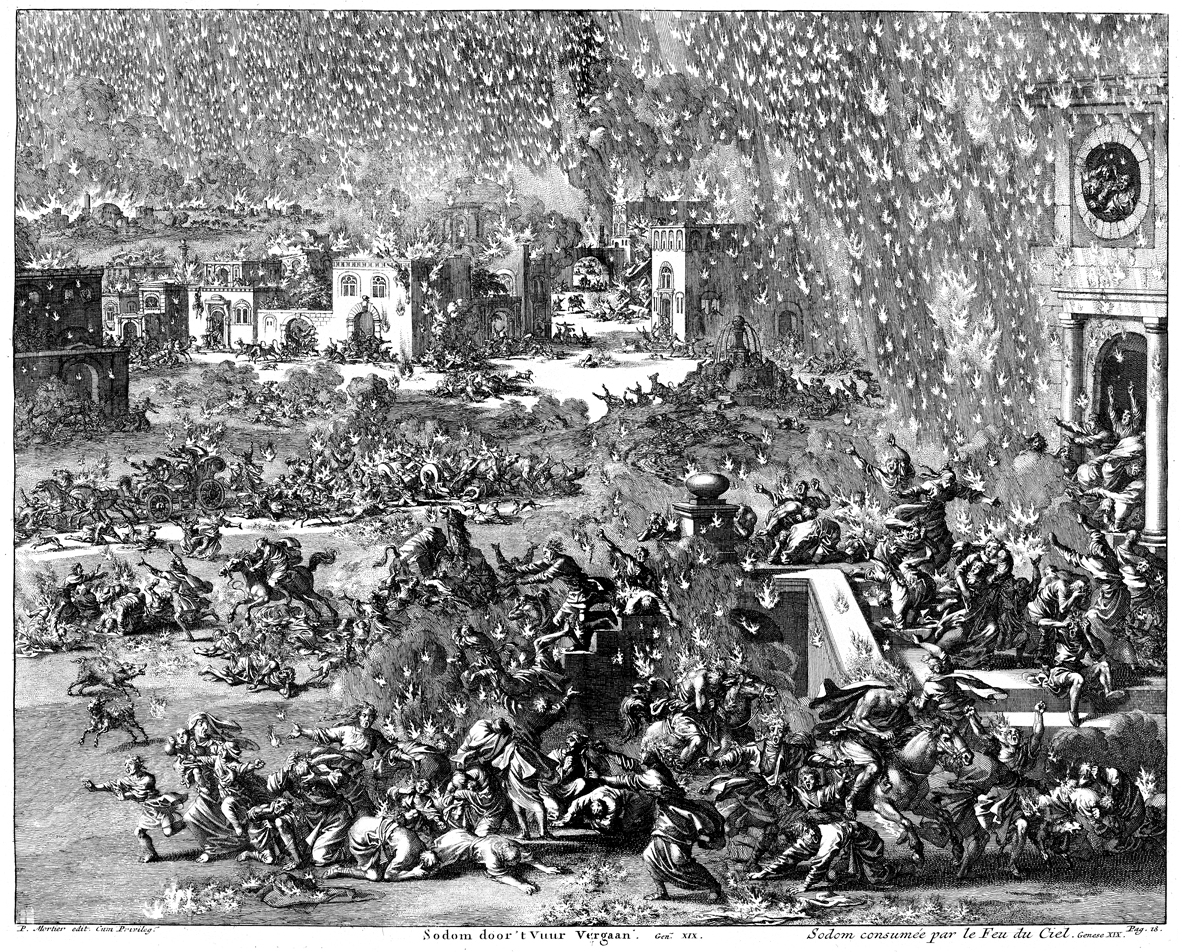 Description: The destruction of Sodom and Gomorrah by fire from heaven.