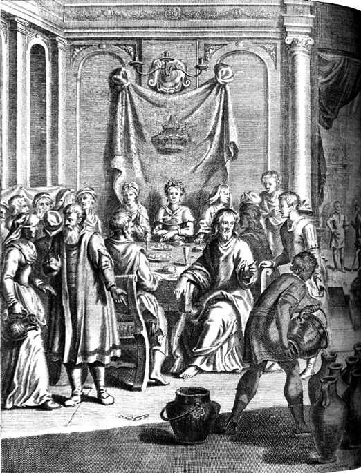 Description: Matthias Scheits' (c. 1630-1700) depiction of Jesus turning water into wine at a wedding feast in Cana of Galilee.