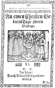Description: This print features Christians gathering together on the occasion of infant baptism, a scene which is used as the title-image of the section of the Lutheran hymnist Joseph Clauder’s (1586 – 1653 CE) Psalmnodia novae pars nova: sive selectissimorum hymnorum centura II dedicated to hymns for Christian birthdays.