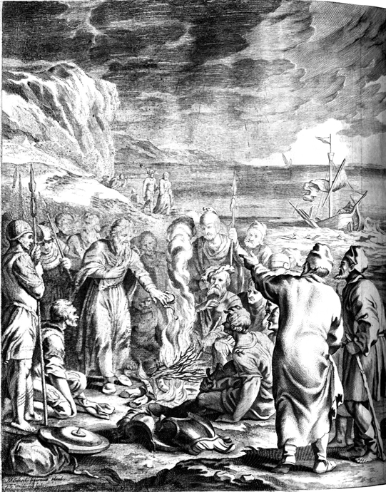 Description: Matthias Scheits' (c. 1630-1700) depiction of Paul bitten by a viper after being shipwrecked on the island of Malta.