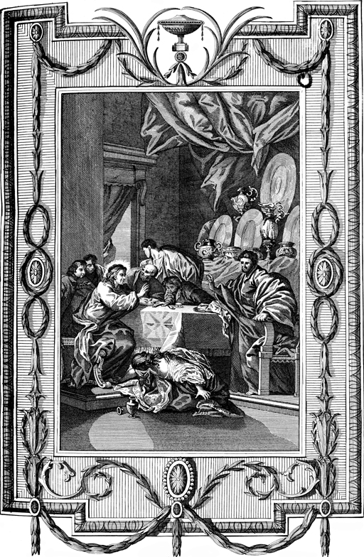 Description: Jesus is anointed by a sinful woman at the house of Simon the Pharisee.