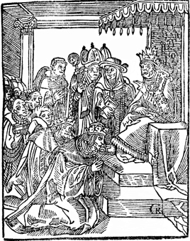 Description: In contrast to Jesus washing his disciples' feet, the Pope has others bow before him.