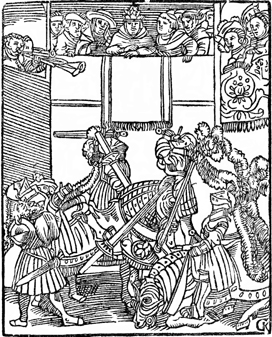 Description: In contrast to Jesus' healings, the Pope watches a game of joust.