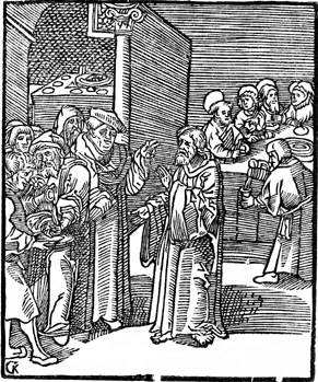 Description: The Pharisees challenge Jesus about allowing his disciples to eat without washing their hands. The artist’s or engraver’s initials (CK) have been placed at the bottom left corner.
