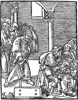 Description: Jesus overturns the tables of the moneychangers in the temple.