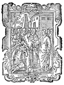 Description: In this woodcut print, the artist depicts Jesus praising the faith of the centurion who has beseeched him to heal his dying slave.