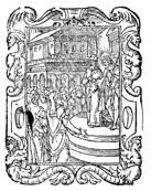 Description: In this woodcut print, the artist depicts Pilate’s presentation of a scourged Jesus to the Jewish mob.