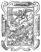 Description: In this woodcut print, the artist depicts the sounding of the first trumpet as described in the Book of Revelation. An angel stands on a cloud blowing his trumpet. Beneath the cloud, fire consumes the earth’s vegetation.