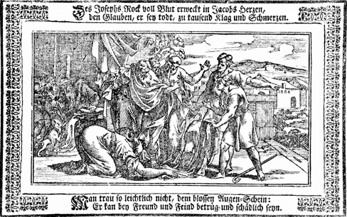 Description: After dipping Joseph's garment into goat's blood, Joseph's brothers deceive their father, Jacob, into thinking that an animal has devoured Joseph.