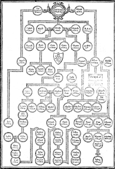 Description: Family tree of Hezron, son of Perez, son of Judah, fourth tribe of Israel.