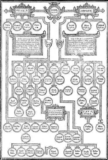 Description: Family trees of Issachar and Zebulon, ninth and tenth tribes of Israel.