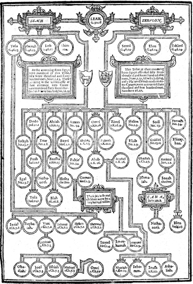 Description: Family trees of Issachar and Zebulon, ninth and tenth tribes of Israel.