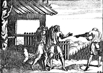 Description: Ham dishonors Noah by pointing out his nakedness, but Shem and Japheth cover their father with a sheet. The artist’s or engraver’s monogram, AZ, has been placed in the bottom right.