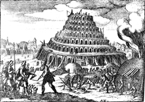 Description: The tower of Babel is constructed. The artist’s or engraver’s monogram, AZ, has been placed in the bottom right.