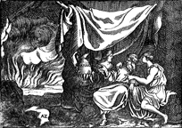 Description: Lot’s daughters seduce him after getting him drunk, while Sodom and Gomorrah burn (background). The artist’s or engraver’s monogram, AZ, has been placed in the bottom left.