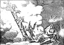 Description: Jacob's vision of angels ascending and descending from heaven on a ladder. The artist’s or engraver’s initials (AZ) have been placed on the bottom left.