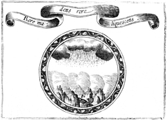 Description: A forested area is covered in dew. The dew represents God’s grace and mercy. The image is placed within a circle while a Latin inscription is placed overhead that reads RORE MADENS RORE LIQUESCENS (“wet with dew, dew melting”).