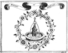 Description: A wreath of flowers surrounds a fountain, symbolizing the Virgin Mary’s endless fountain of spiritual grace. A Latin inscription reads PERENNIS ET INDEFICIENS (“eternal and unfailing”).
