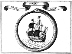 Description: A snake frames an image of a ship. A Latin inscription reads De LONGE PORTANS PANEM (“bread from afar”). Here the ship, which brings bread and other supplies from afar, symbolizes the Virgin Mary who brought the living bread in the form of Jesus Christ from heaven.
