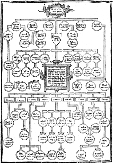 Description: The family tree of Ephraim, son of Joseph, half-tribe of Israel.