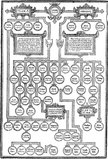 Description: Family trees of Issachar and Zebulon, ninth and tenth tribes of Israel.