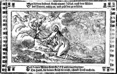 Description: As his disciples sleep, Jesus prays that his cup may pass. In the background, Jesus' captors arrive.