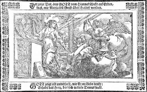 Description: The angel Gabriel visits Mary and announces that she will give birth to Jesus.
