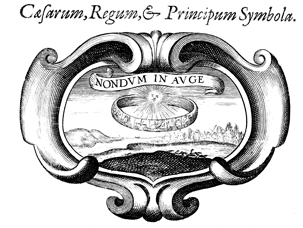 Description: This engraving depicts a sun surrounded by a ring of symbols. Some of the symbols on the ring include scales, a scorpion, and a centaur. The coat of arms and engravings in this book were designed by Silvestro Pietrasanta (1590-1647).