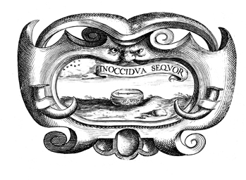 Description: This copper plate engraving depicts a compass sitting in a field with clouds and birds above the compass. The coat of arms and engravings in this book were designed by Silvestro Pietrasanta (1590-1647).