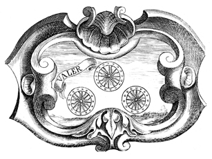 Description: An engraving that depicts three suns in the middle of the image. To the left of the suns is a Latin motto which translates to valor. The coat of arms and engravings in this book were designed by Silvestro Pietrasanta (1590-1647).