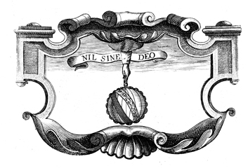 Description: An engraving that illustrates a hand holding a globe. The Latin motto above the globe reads, "Nothing without God." The coat of arms and engravings in this book were designed by Silvestro Pietrasanta (1590-1647).