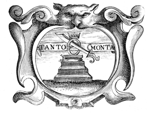 Description: A copper plate engraving that depicts a set of stairs with a scimitar going through a circular buckle. The buckle is adorned with a crown. The coat of arms and engravings in this book were designed by Silvestro Pietrasanta (1590-1647).