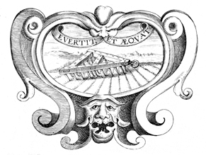 Description: A copper plate engraving that depicts a tilling machine used in farming. The Latin motto above the tilling machine reads, "Balance and equalize." The coat of arms and engravings in this book were designed by Silvestro Pietrasanta (1590-1647).