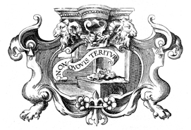 Description: This copper plate engraving depicts a cornet or a crown resting on a table. The coat of arms and engravings in this book were designed by Silvestro Pietrasanta (1590-1647).