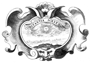 Description: A copper plate engraving with the image of a sun in splendor over a field. The coat of arms and engravings in this book were designed by Silvestro Pietrasanta (1590-1647).