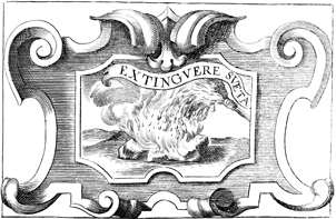 Description: This copper plate engraving depicts a fire extinguished by water. The Latin motto above the image reads, "Extinguish the familiar." The coat of arms and engravings in this book were designed by Silvestro Pietrasanta (1590-1647).