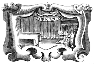 Description: A copper plate engraving depicts papers going into a fireplace and burning. The coat of arms and engravings in this book were designed by Silvestro Pietrasanta (1590-1647).