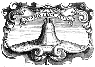 Description: This copper plate engraving depicts a bell on the ground. The coat of arms and engravings in this book were designed by Silvestro Pietrasanta (1590-1647).