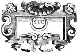 Description: This copper plate engraving depicts a crescent moon with the Latin word SIC inside of the moon. The coat of arms and engravings in this book were designed by Silvestro Pietrasanta (1590-1647) .