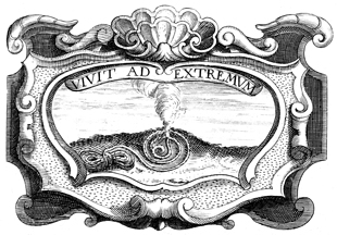 Description: A copper plate engraving with the image of rope burning and producing smoke. The coat of arms and engravings in this book were designed by Silvestro Pietrasanta (1590-1647).