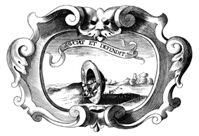 Description: This copper plate engraving depicts a helmet on its side in the middle of a field. The coat of arms and engravings in this book were designed by Silvestro Pietrasanta (1590-1647).