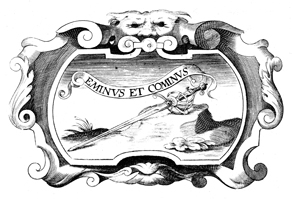 Description: A copper plate engraving with the image of a well-crafted sword resting on a rock. The coat of arms and engravings in this book were designed by Silvestro Pietrasanta (1590-1647).